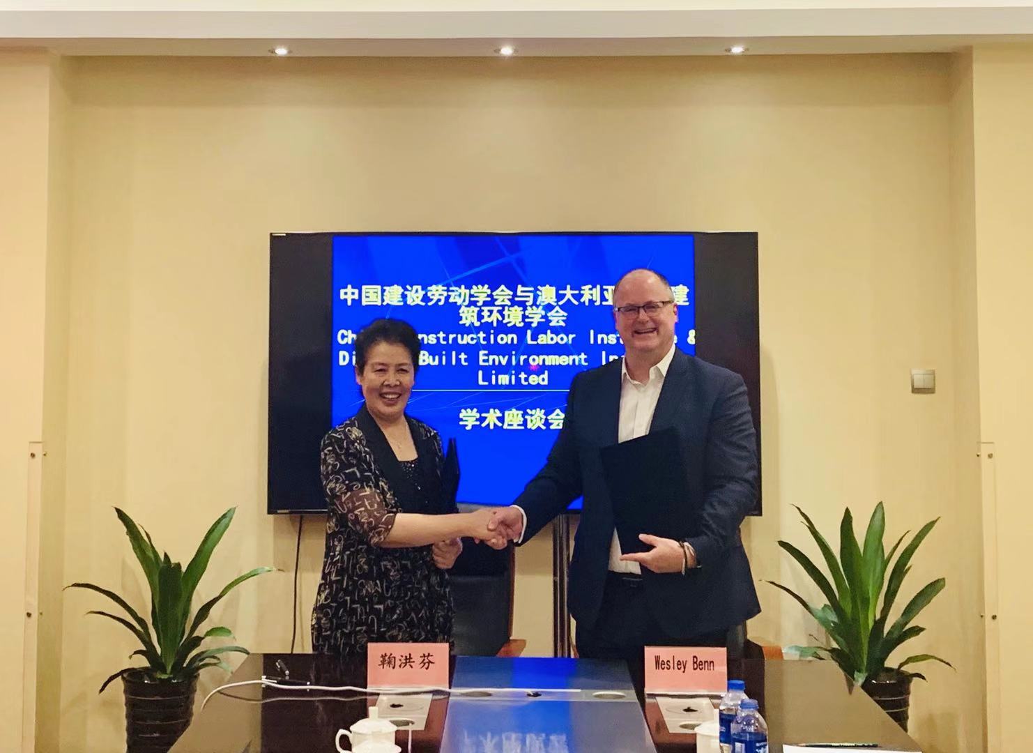 2019年7月31日,中国建设劳动学会与澳大利亚数字建筑环境学会在北京签署了合作意向备忘录。中国建设劳动学会会长鞠洪芬,澳大利亚数字建筑环境协会会长Wesley Benn先生,中国建设劳动学会常务副秘书长夏阳,中国建设劳动学会BIM专委会主任郝圣锟,中国建设劳动学会BIM专委会副主任郭淑婷,出席会议。会议期间双方就推动数字建筑环境领域国内外技术交流和人才培养达成共识。未来双方将在人力资源的开发与研究及相关专题的学术交流,BIM技术技能培训体系、标准体系、评价体系与职业能力建设, BIM技术技能培训与学术研讨国际交流,高素质BIM技术技能人才引进等多个方向开展合作。