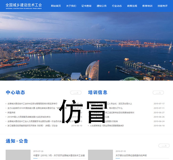近日,中国建设劳动学会接到相关单位举报,互联网上出现了非法克隆本学会官方网站相关业务及信息的网站。本学会郑重声明,此行为已涉嫌违法,将保留对涉嫌侵权的单位或个人追究法律责任的权利。